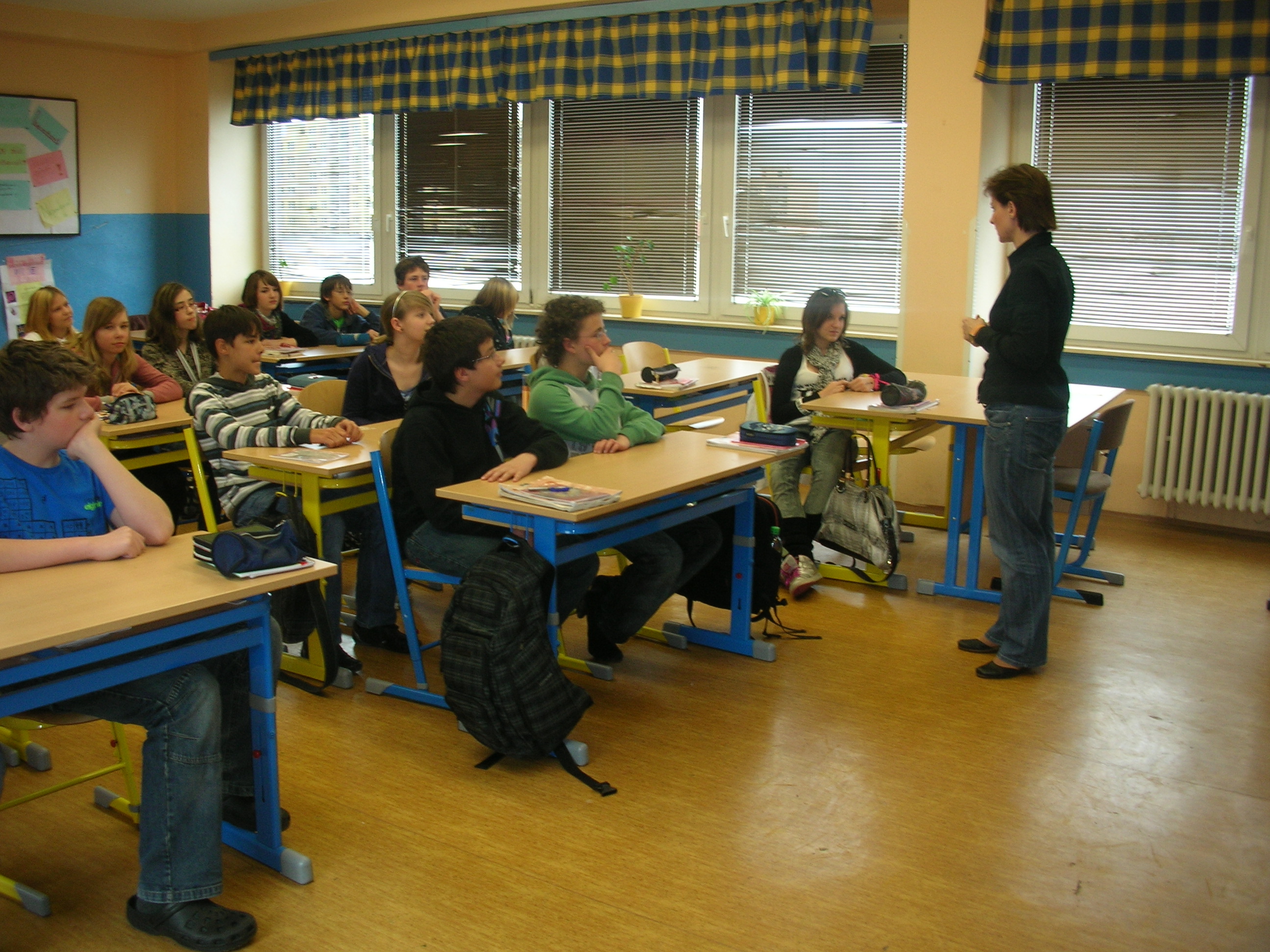 Lenka Palkovská s žáky na začátku hodiny