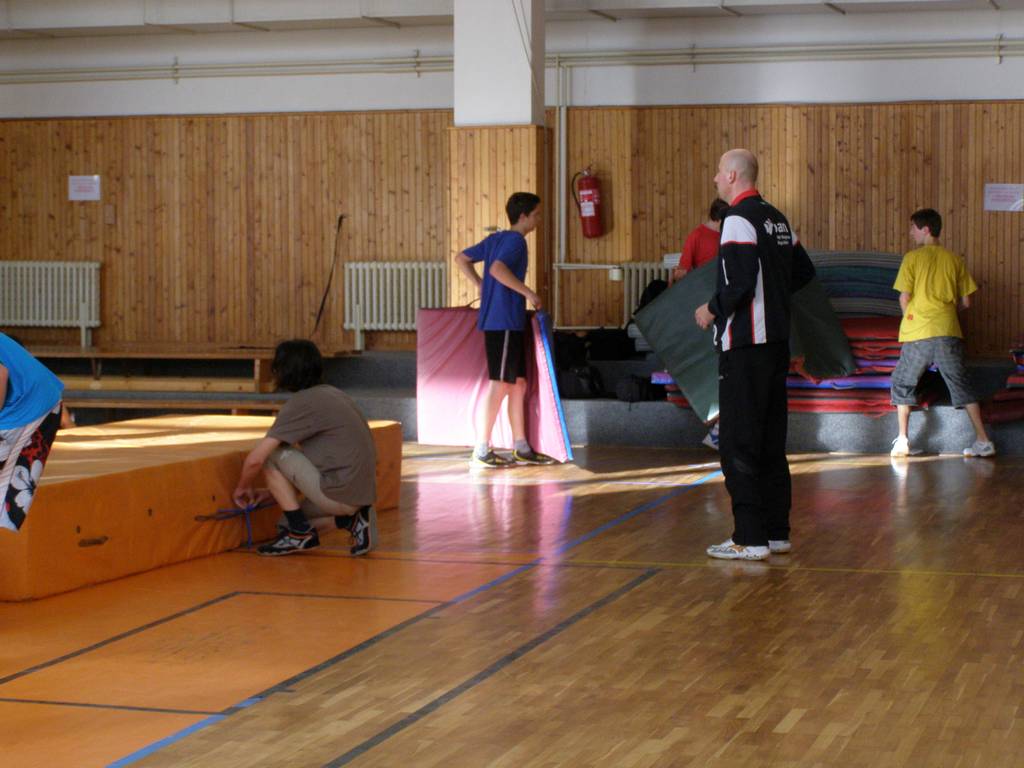 s žáky při úklidu tělocvičny