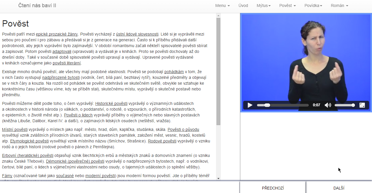 Náhled stránky online příručky Čtení nás baví II.